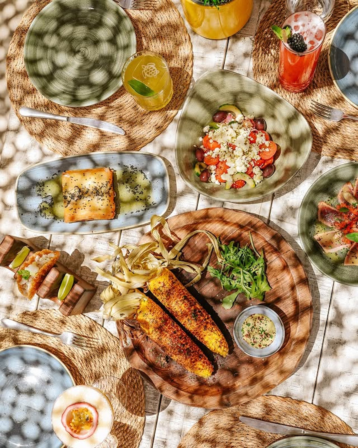 Shellona Saint-tropez offre de véritables influences méditerranéennes de par sa variété de plats frais et colorés à partager, mais aussi dans son environnement naturel bohème qui se marie parfaitementau style tropézien.